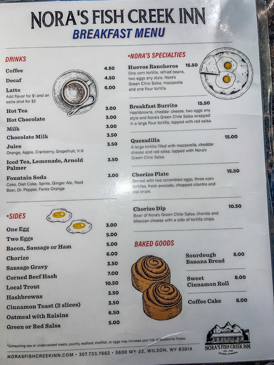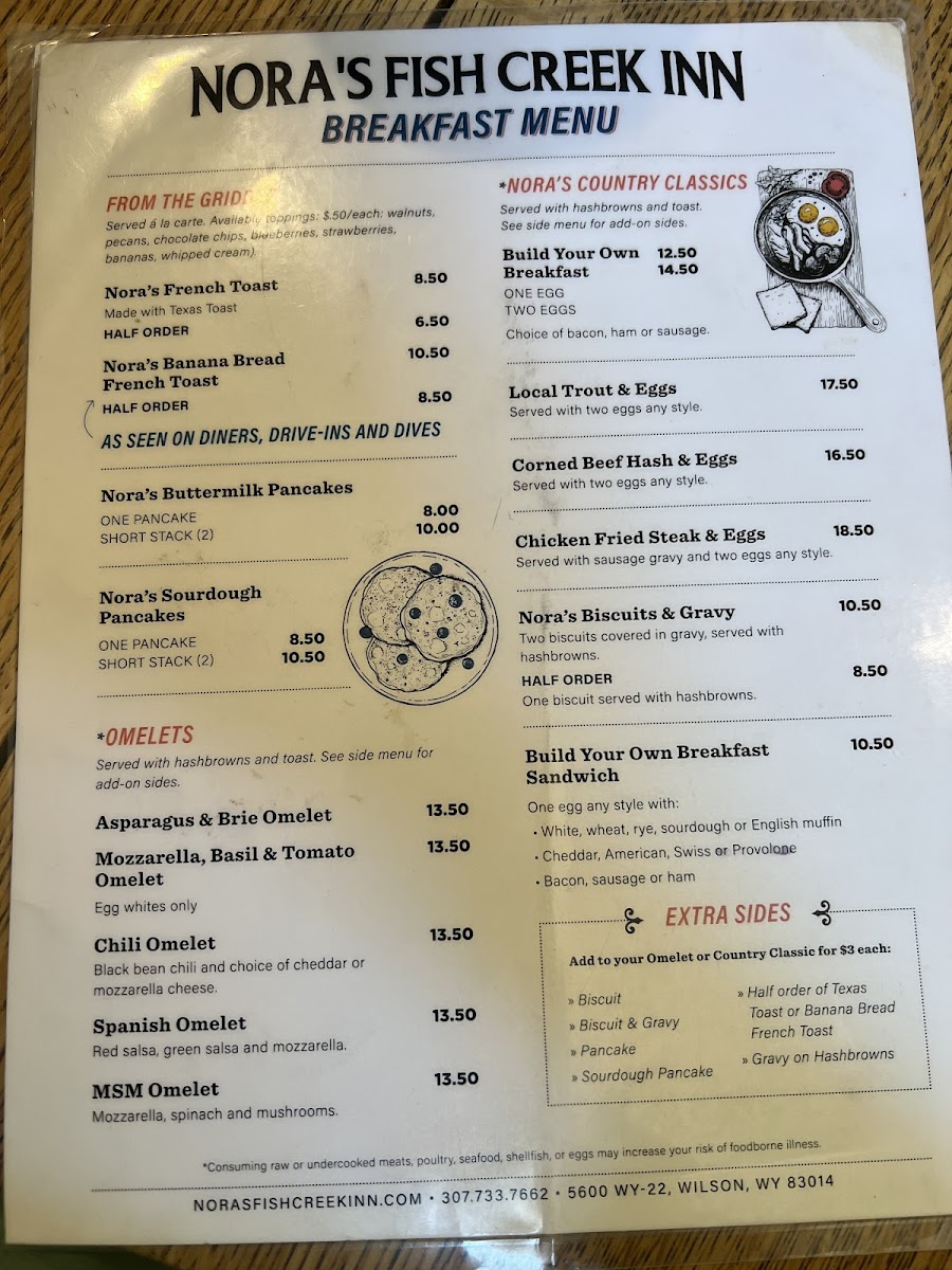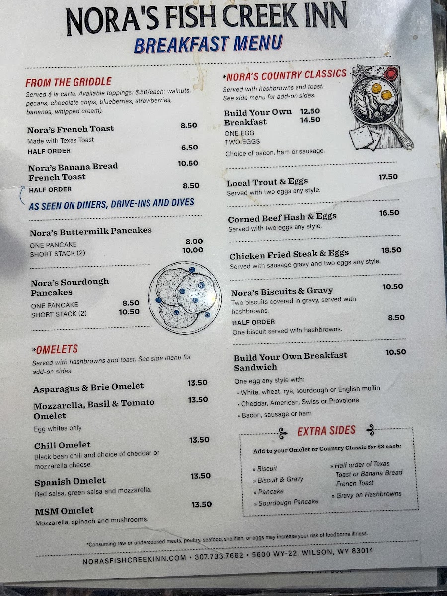 Nora's Fish Creek Inn Menu