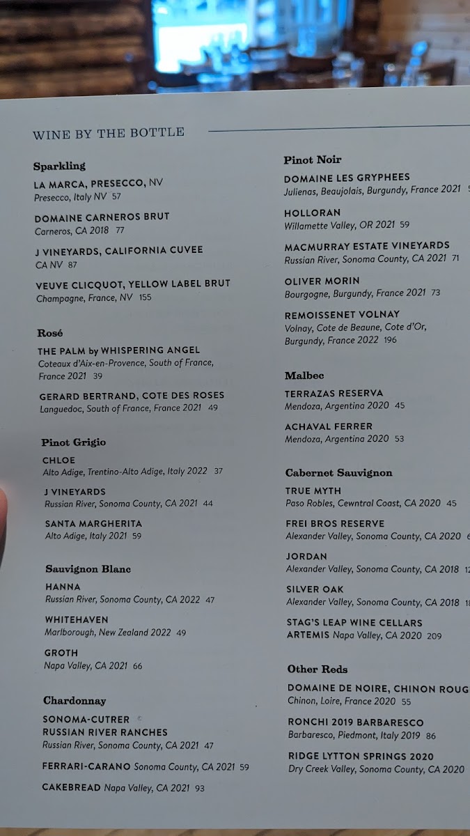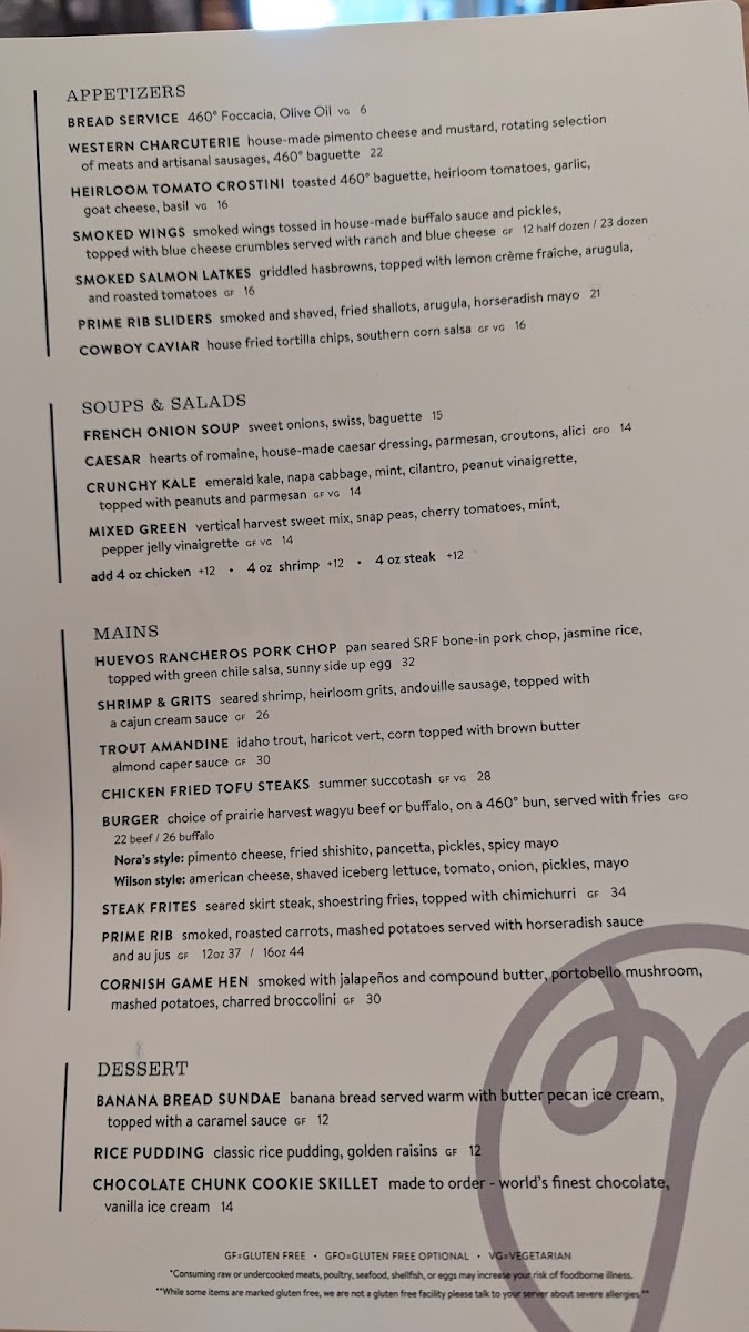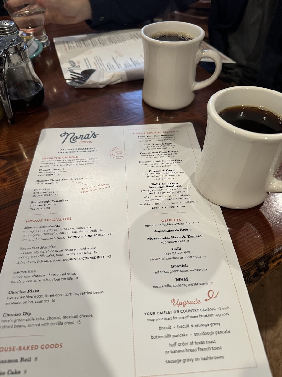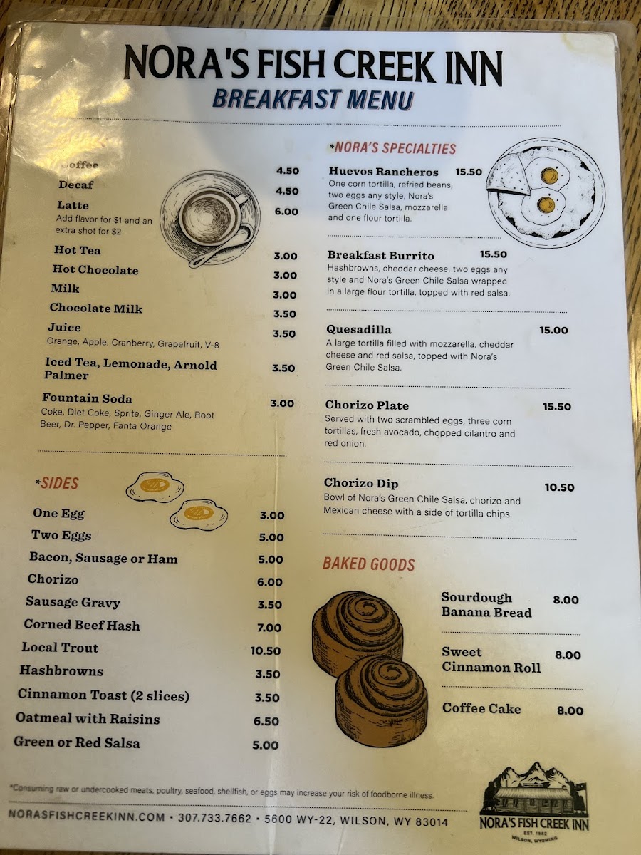 Nora's Fish Creek Inn Menu